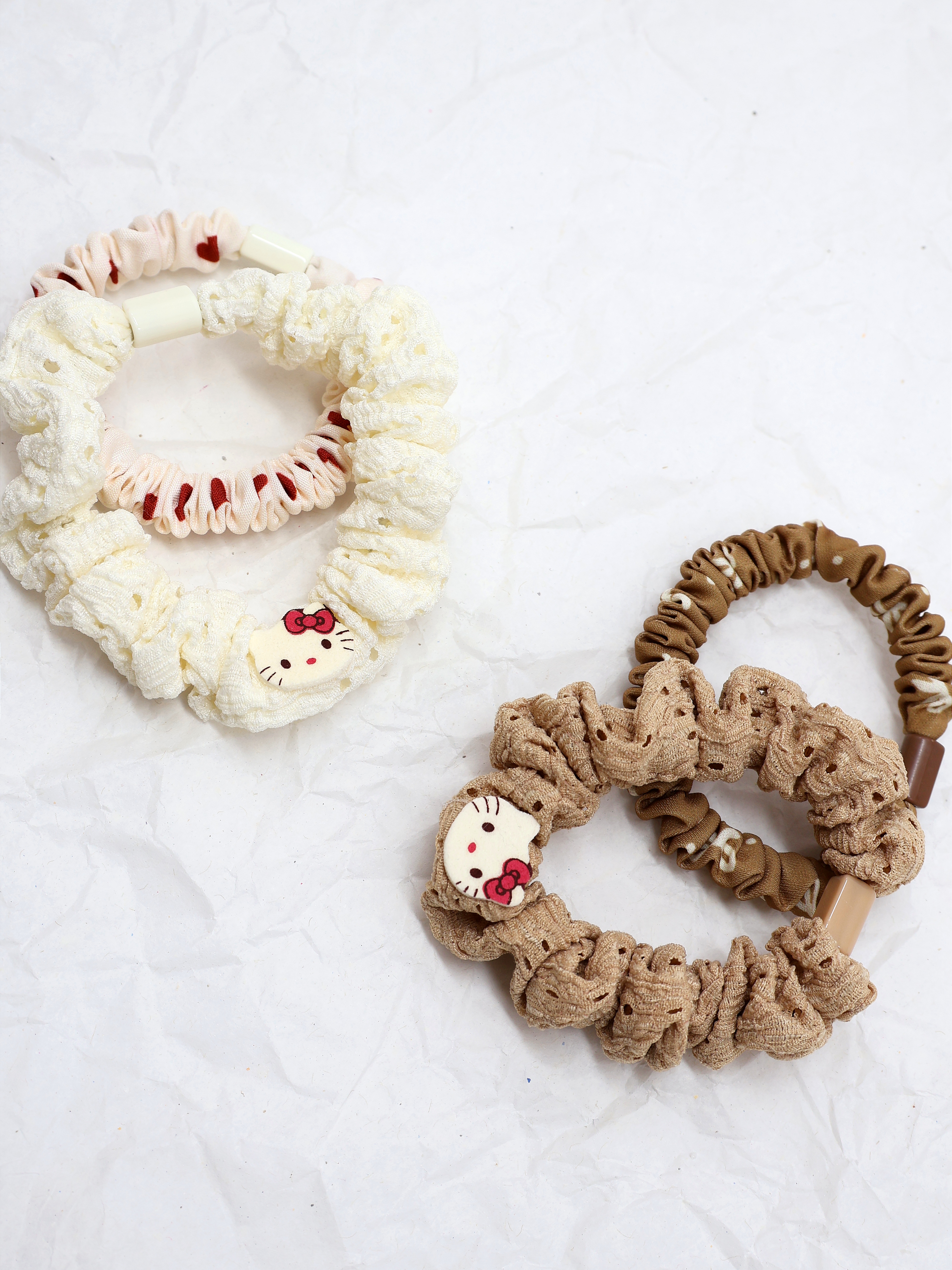 کش بزرگتر از جنس گیپور هست و برای دم اسبی،بستن بالای بافت مو و همچنین برای گوجه ای کردن مو قابل استفاده است. و کش کوچکتر هم میتوان برای پایین بافت مو استفاده کرد.