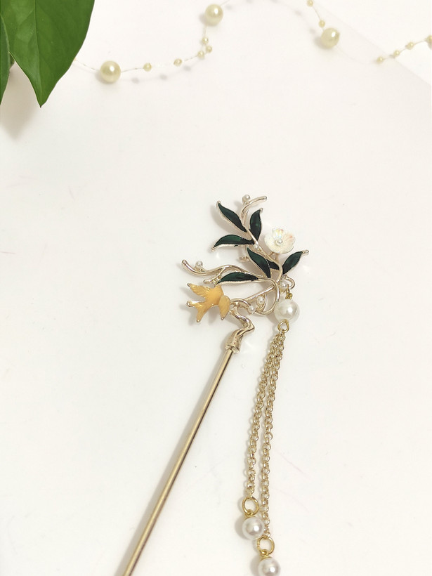 کانزاشی برگ با اون گل سفید و پرنده زیبای کنارش میتونه یه استایل شرقی زیبا به موهات بده.